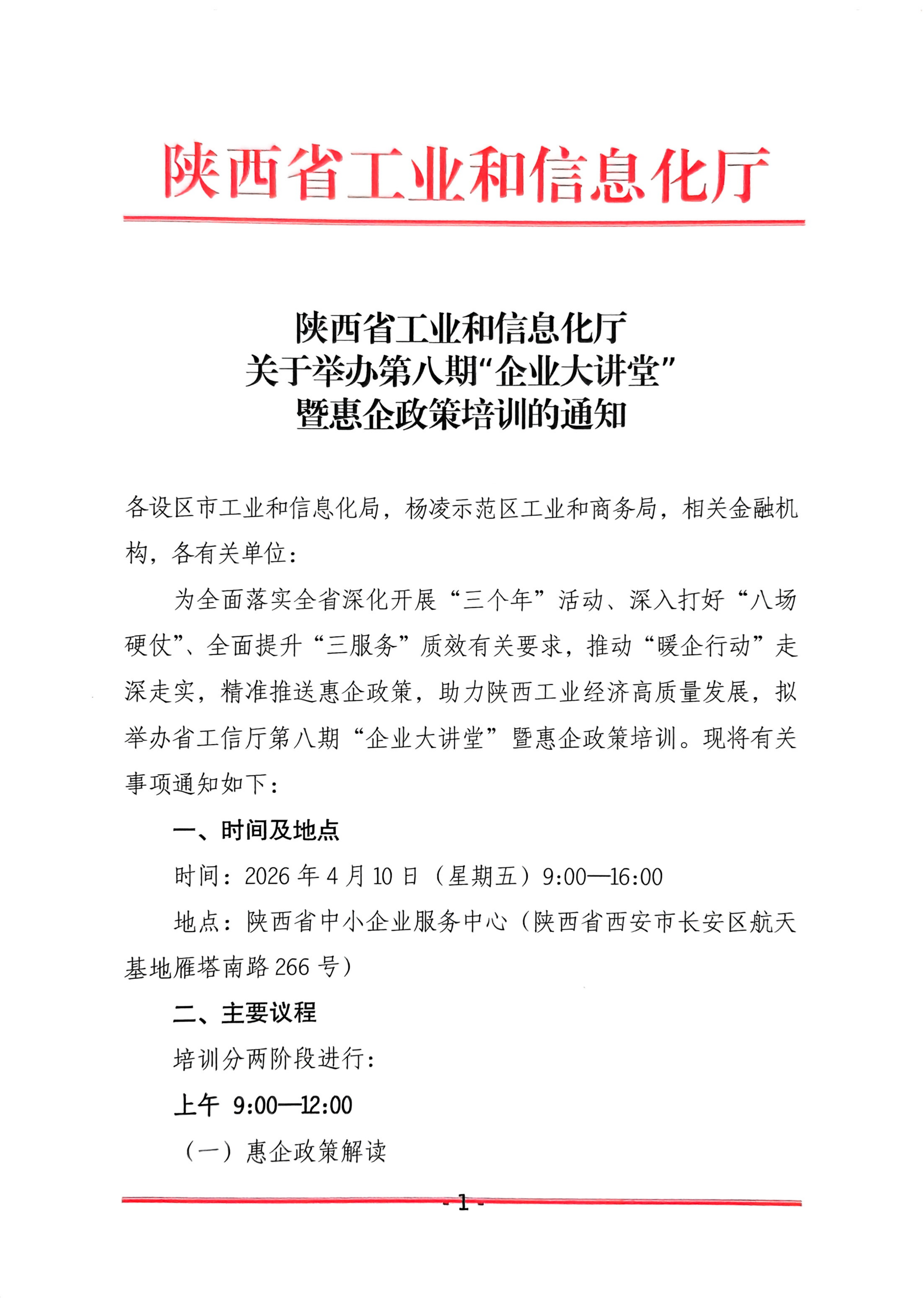 陕西省工业和信息化厅关于举办第八期“企业大讲堂”暨惠企政策培训的通知