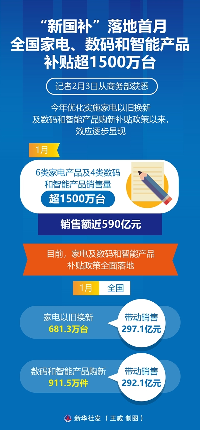 一图读懂丨“新国补”落地首月全国家电、数码和智能产品补贴超1500万台