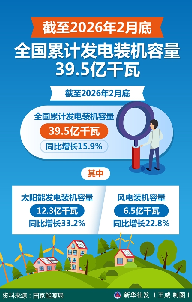 一图读懂 | 截至2月底全国累计发电装机容量39.5亿千瓦
