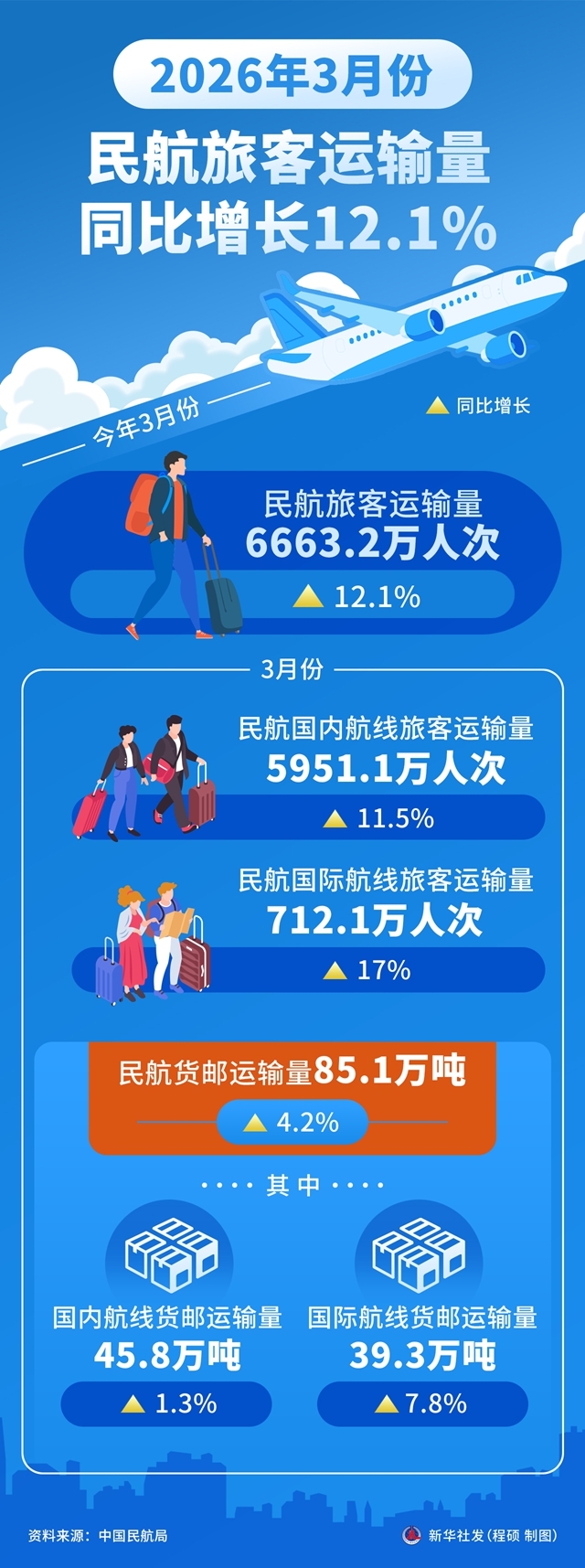 一图读懂 | 2026年3月份民航旅客运输量同比增长12.1%