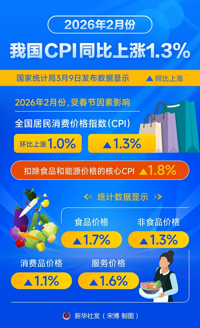 一图读懂 | 2026年2月份我国CPI同比上涨1.3%