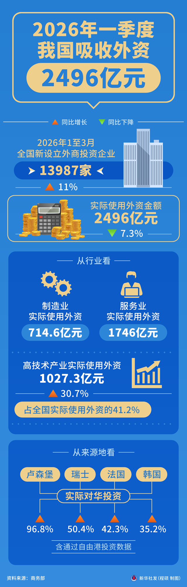一图读懂 | 2026年一季度我国吸收外资2496亿元